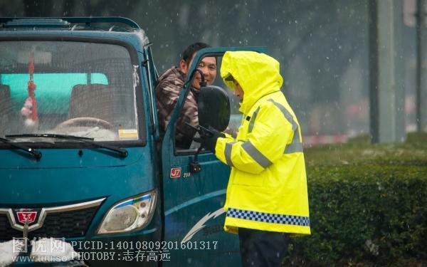 风雪中闪亮的警徽