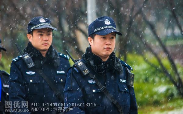 风雪中闪亮的警徽