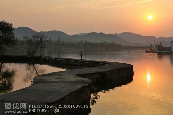 夕阳下的鉴湖官塘