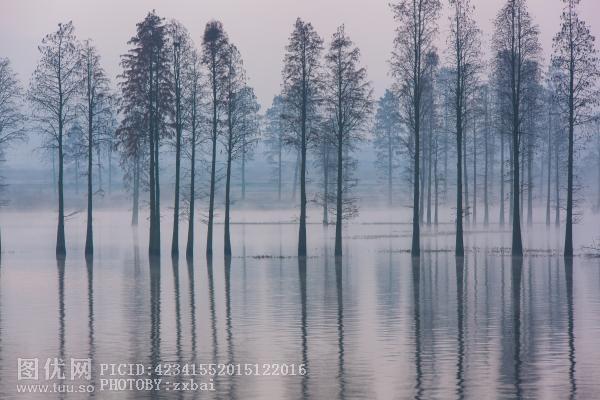 冬季里的四明湖水杉