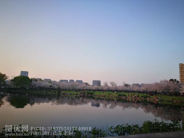 傍晚的瓜渚湖与樱花