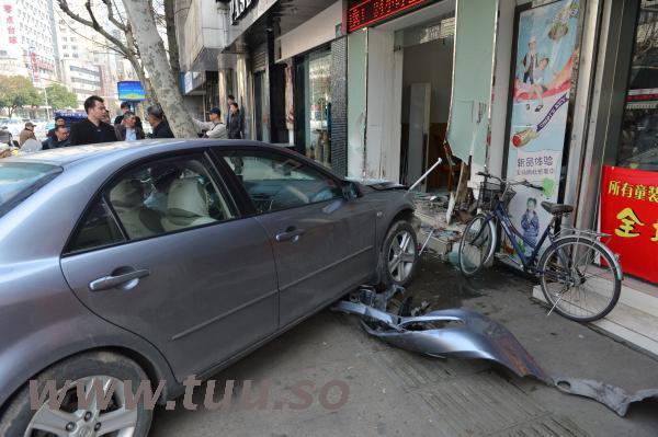 油门错当刹车 小轿车冲进面馆